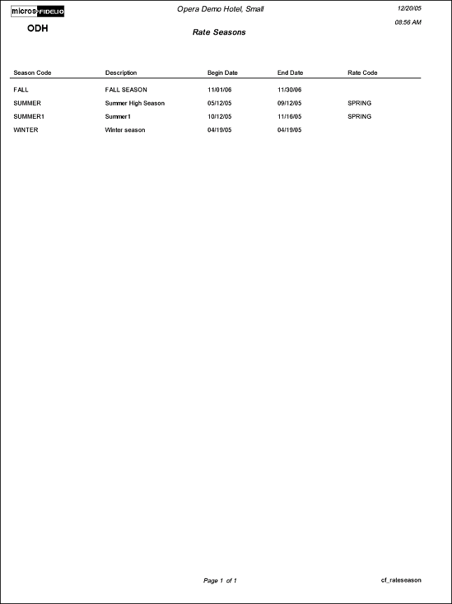 The Configuration Report for Rate Seasons will display all Seasons that have been configured for the property.