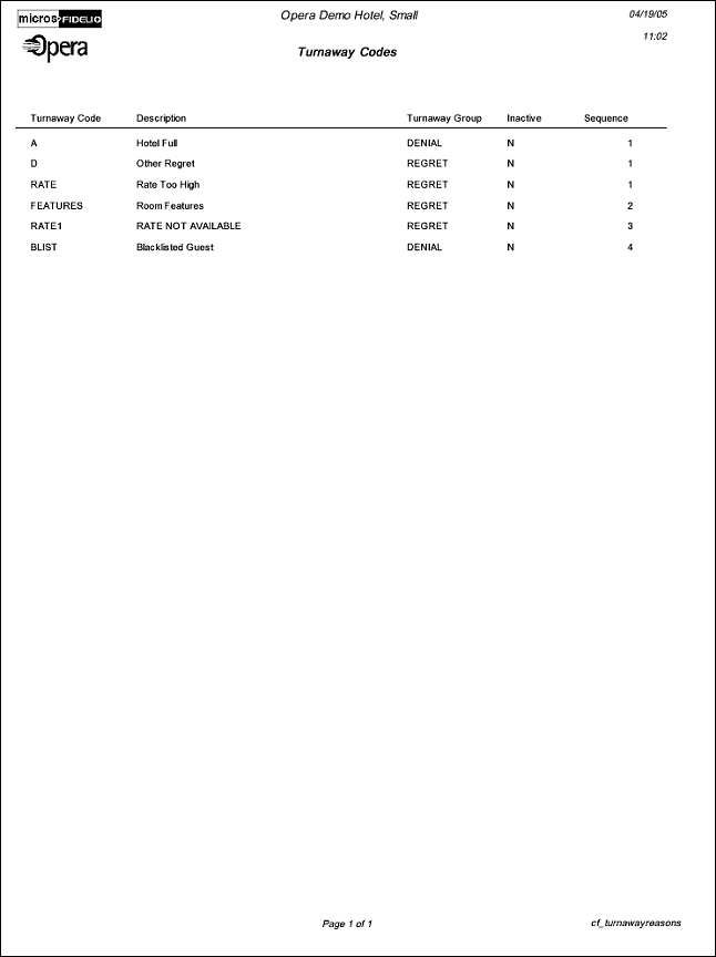 The Configuration report Turnaway Reasons will display all Turnaway Reasons that have been configured in the application. The report will only be available if the Application Function TURNAWAYS has been activated for your property
