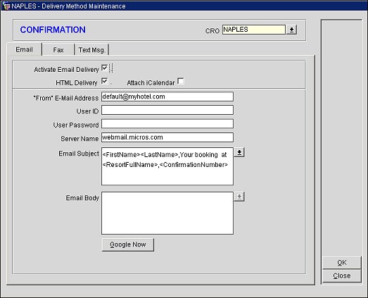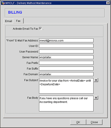 Note: Fax delivery requires an SMTP (Simple Mail Transfer Protocol) compliant fax server. ZetaFax is recommended for OPERA fax delivery.