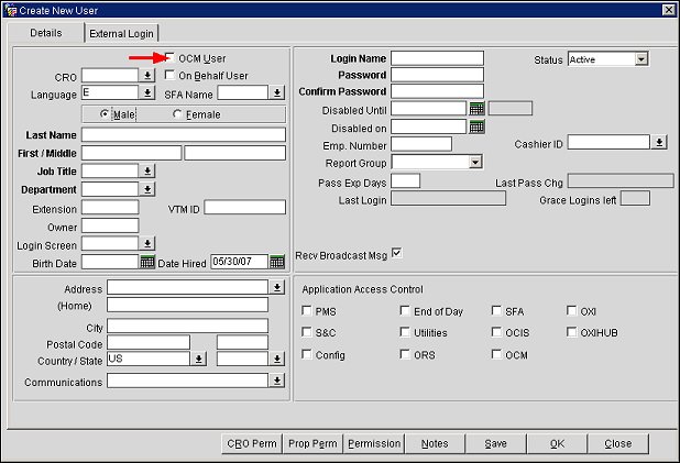 To create an OCM user, create the user as normal, and ensure that the OCM User check box is selected.