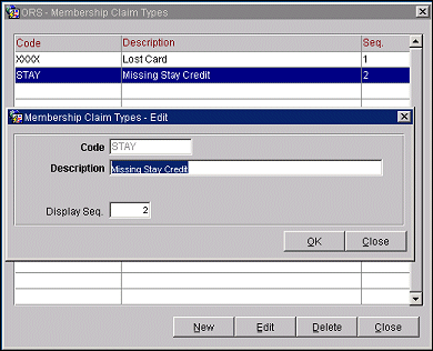 To create a new claim type, select the New button. To edit an existing class, highlight your choice on the Membership Claim Types screen and select the Edit button. The Membership Claim Types- New or the Membership Claim Types - Edit screen appears.