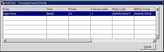 You may select the Award Points button to see further details on the award points associated with this membership points transaction, including the rule or rules applied and the points accrued by the application of each rule.