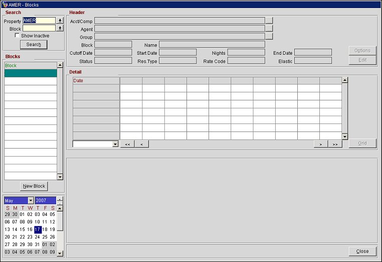 The Blocks screen consists of five main areas. To find out additional information about each area, select the appropriate link from the table below.