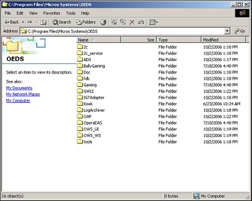 By default, the OEDS Installation Wizard installs files to C:\Program Files\Micros Systems\OEDS. The directory structure is standardized, and a separate folder is created for each feature installed.