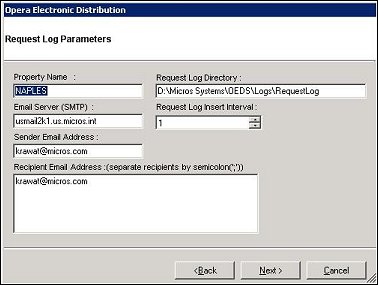 Select the interval in minutes that the service inserts records in the oeds_request_log table and deletes records from the RequestLog.xml file. |