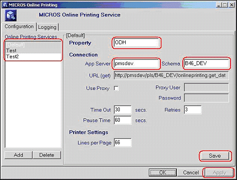 Note: If the application setting ON_LINE_PRINTER is not defined any online printing task for that schema/property will be stopped (de-activated) automatically and needs to be activated manually once the application setting is updated correctly.