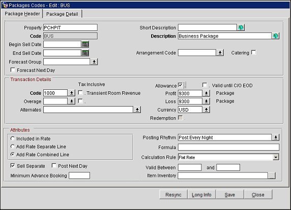 Depending on certain restrictions in place (such as an in-house reservation using this rate code with the package having an allowance), only certain fields that are not grayed out on the package header of the package attached to rate code can be modified.