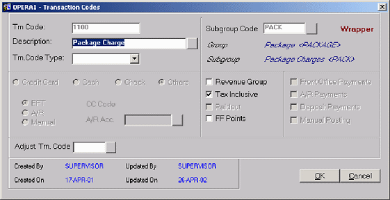 Item Price. This is the cost of the package to the hotel. The system will reference this amount when posting allowances for the package.
