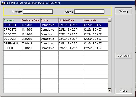 Note: The Gen. Data button will not be available for a Property with a Pending record if the night audit has not run and rolled the business date yet at the time.